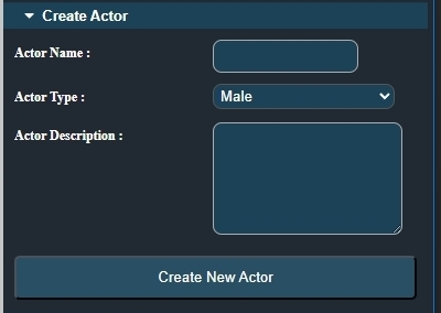 📄 View manual in PDF format Listen in voice mode : ![]() ActorsLast update : January 04, 2026🔗 Create new actorLet’s start by creating a new actor using the expandable **“Create Actor”** panel: Give your actor a name. It must be unique. A real-time check is performed as you type, and you will be notified if the name already exists. ⚠️ Next, choose whether the actor you want to create is male or female. 🧍‍♂️🧍‍♀️ Finally, you can add a description to your actor. This is mainly for your own reference, helping you remember what you plan to do with this character later. 📝 All that’s left is to click the **“Create New Actor”** button. You will then see a newly created actor appear, initially without any clothes (the character is nude at first). 👤 Later, once you have saved this character, you will be able to reload and edit it using the **“Load Actor Customized”** panel: