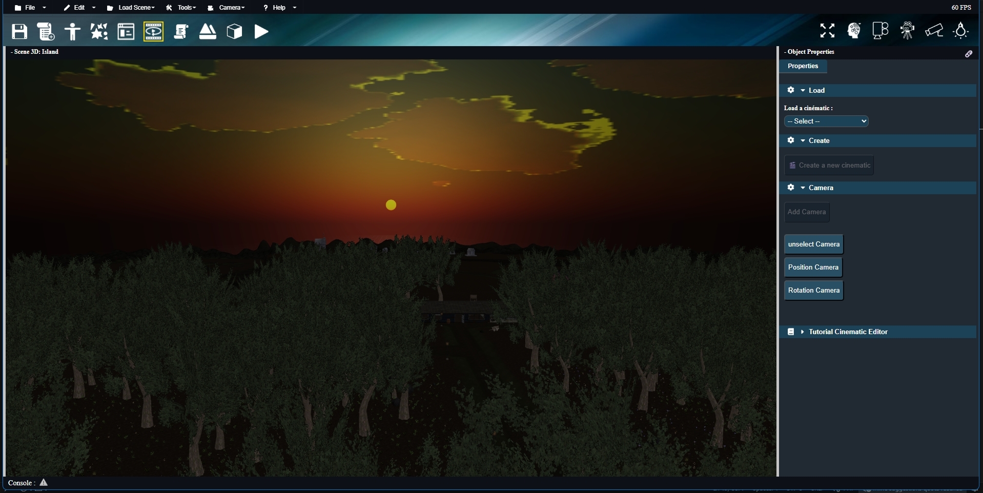 π View manual in PDF format Listen in voice mode : ![]() CinematicLast update : January 06, 2026π PresentationThe cinematic editor allows you to create short animated clips. You have probably already seen this in games: when your character enters a specific area, a short cinematic sequence is triggered. It can last from a few seconds to a few minutes, usually between 1 and 3 minutes. π¬These cinematics are often used to introduce a mission. A character talks, explains a problem, or asks the player to do something for them. Once the cinematic ends, the player regains control and can start the mission that has just been introduced, following a defined sequence. In this way, cinematics help tell a story as the player progresses through the game world. πβ¨ This is exactly what we will explore in this manual: how to create cinematics step by step. The editor is designed to be simple, yet powerful enough to let you create rich scenes without overwhelming you with a heavy or complex interface. Letβs take a look at what the interface looks like: