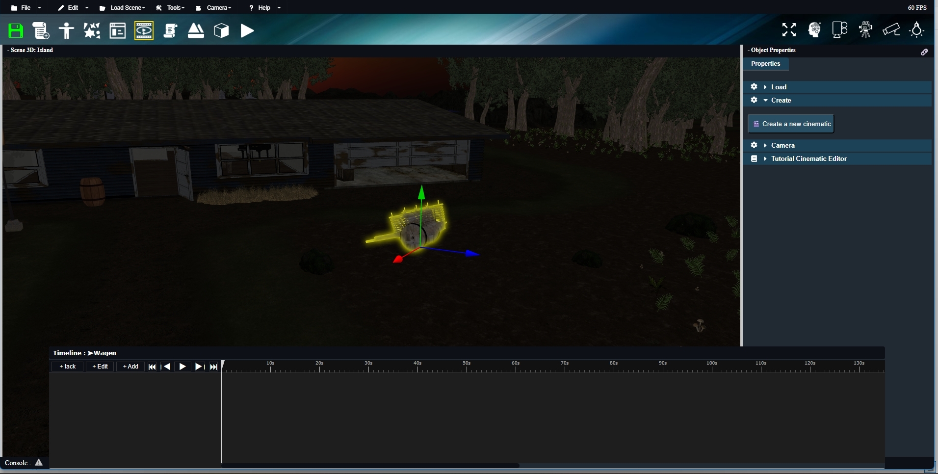 This connection can be created later. The important thing to remember is that you must first select an object, then click the button to create a cinematic linked to that object. Once the timeline is displayed, you can start creating animations. This is exactly what we will explore in the next chapter. π |